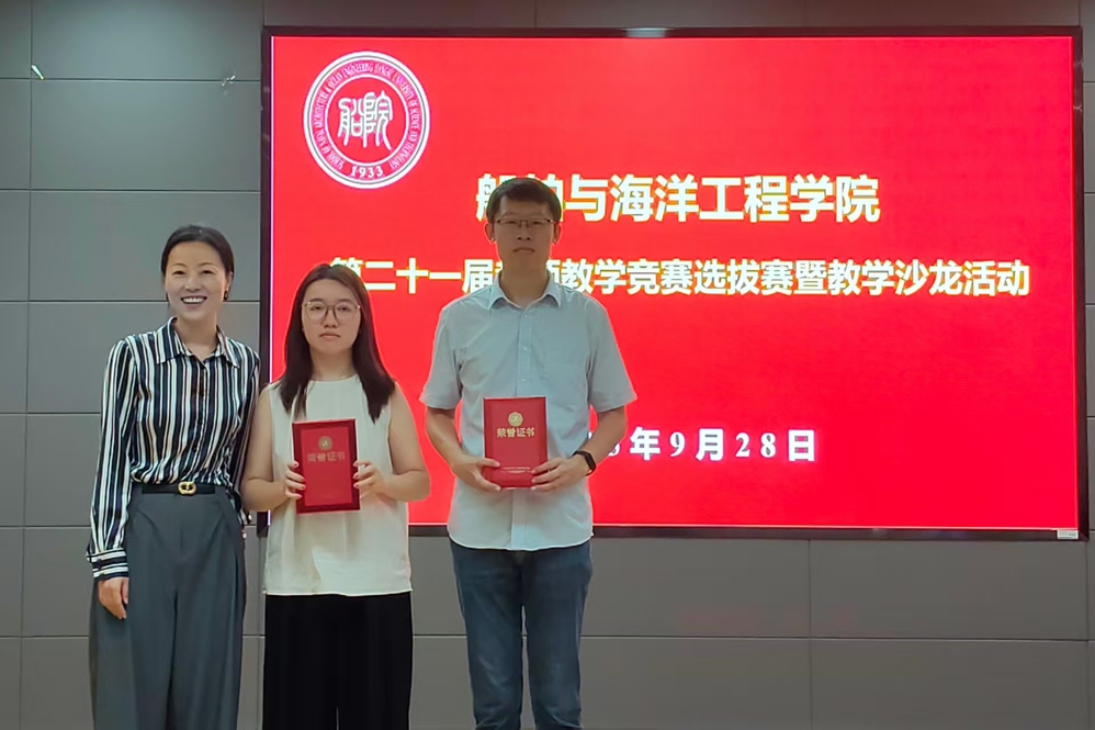 经评审专家从教学设计、内容组织、语言教态及教学特色等多维度综合评议,最终确定获奖名单,并推荐贺斐洋、赵庆凯和朱丹婕三位青年教师参加校级竞赛。评审组组长朱仁庆教授作总结点评并宣读结果,专家为获奖教师颁发证书与奖品。